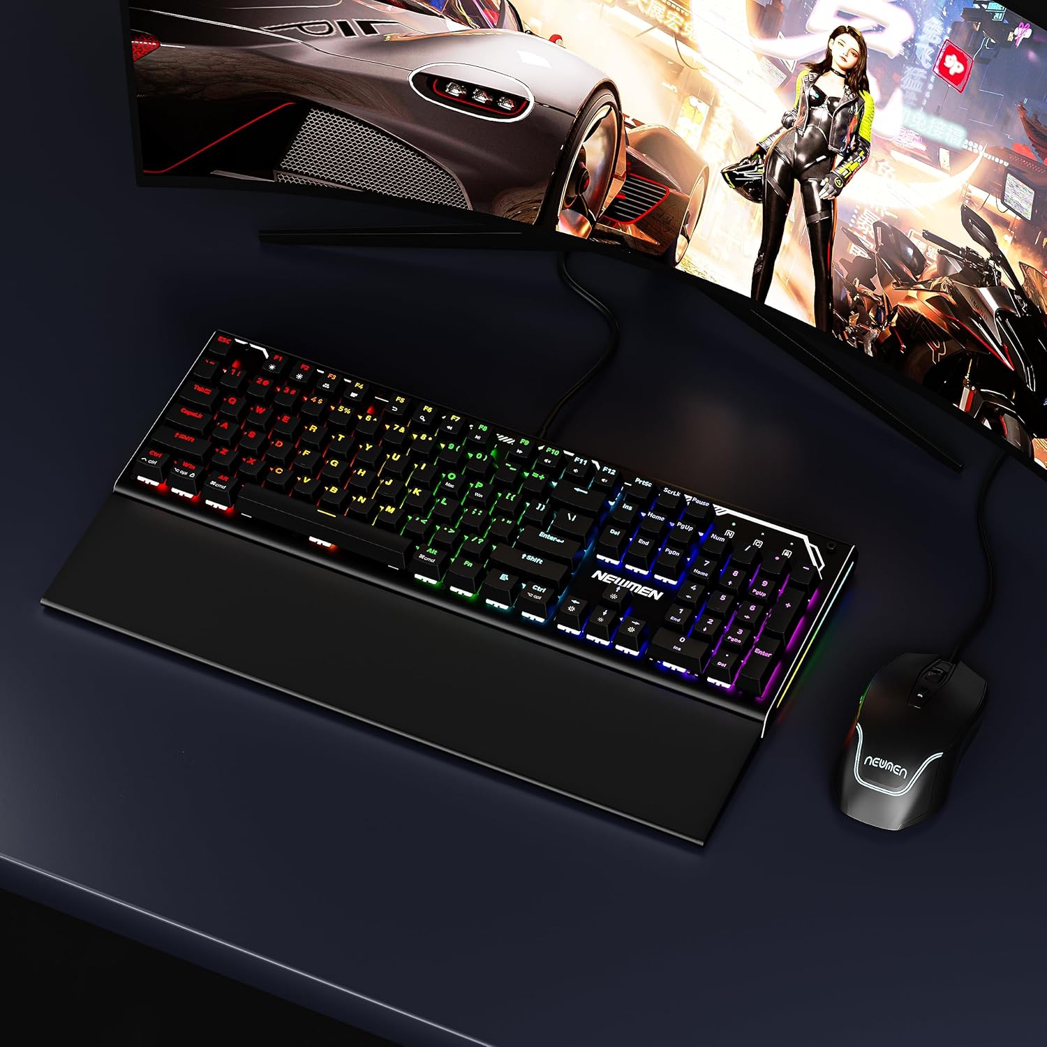 Newmen GM101 Teclado mecánico para juegos, teclado con cable retroiluminado RGB